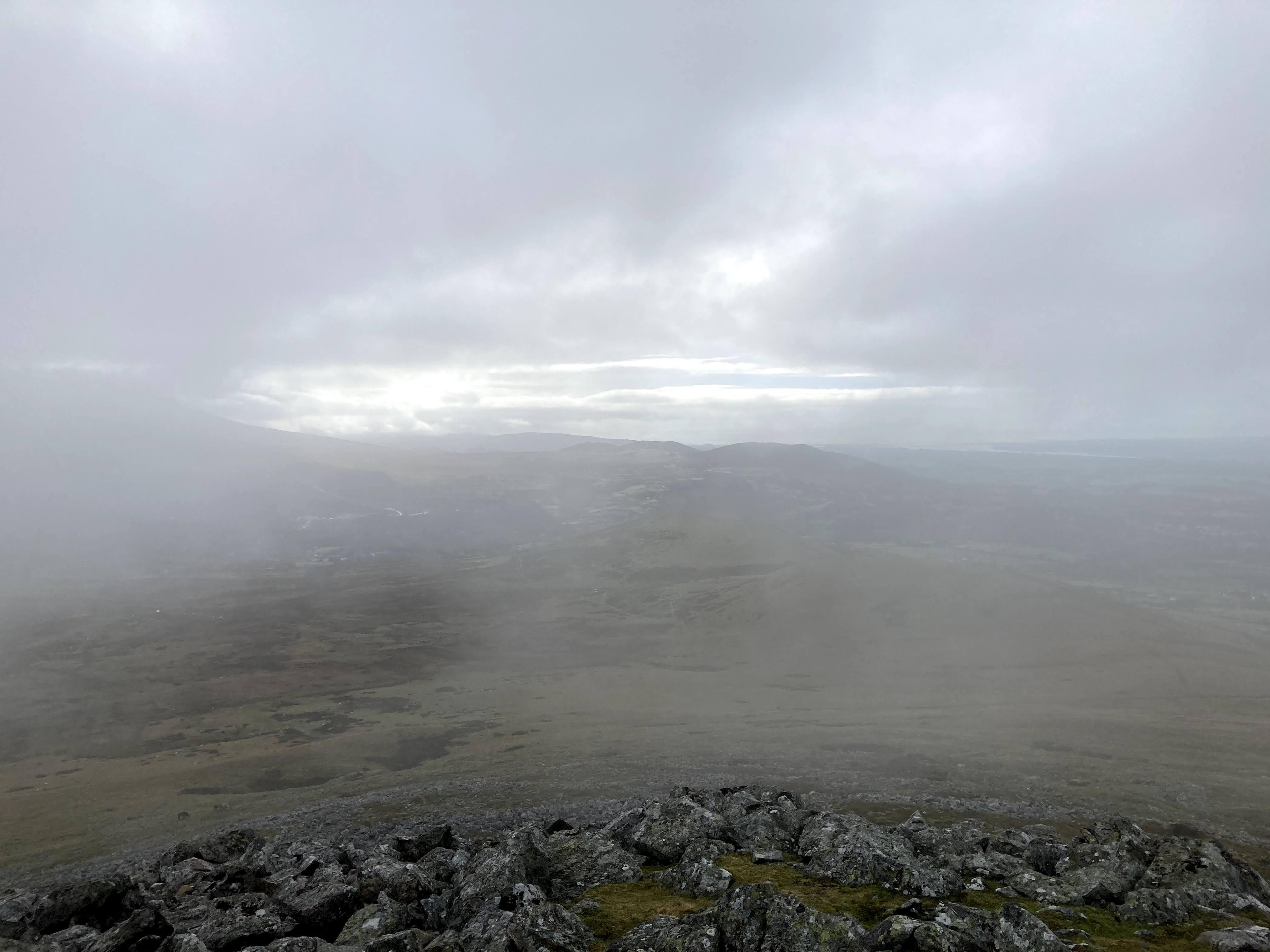With some fortuitous timing and a little bit of planning, we were able to make an ascent of nearby Gyrn between online engagements. At first it felt like the forecast had been a bit optimistic, with it’s talk of brighter skies as we ascended into a light mist.