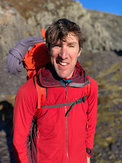 After a long lunch, spent basking in the sunshine like lizards, we climbed out with our packs on to save having to return for the gear.