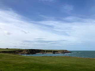 The famous pub on the beach was closed (along with pretty much everything else), but that did at least mean that once again, we had the place to ourselves as we hike out along the cliffs to the lookout point.