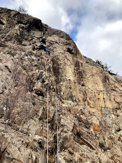 It’s been an absolute stunner and perfect conditions for running a day of rock climbing training. Along with the paddle boarding earlier in the week, this is part of our ‘back to work’ induction/refresher after our enforced absence in the hills with groups. There has been a lot of research published recently about ‘skill fade’ due to the lockdowns etc, so I was keen that we all get together and check that we all still know what to do, before being in charge of students again by ourselves.