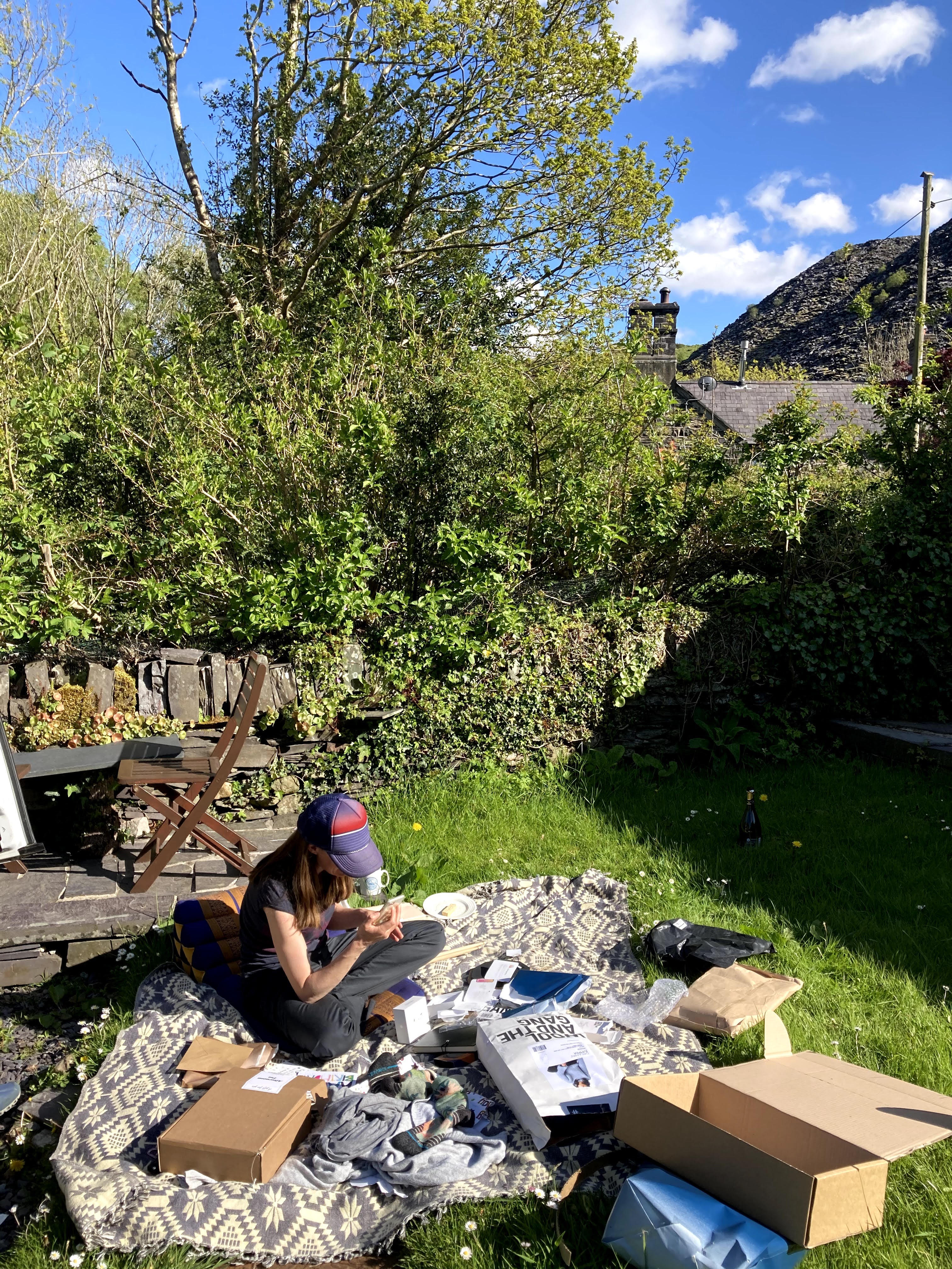 Lunch was taken on the new terrace, with views of Snowdon at the lake side cafe, before we both had to return to work for the afternoon. Afterwards, we were able to enjoy presents in the warmth of The Cottage gardens, before the real treat of meeting friends for a celebratory meal (indoors!) on the banks of the Menai Straits.
