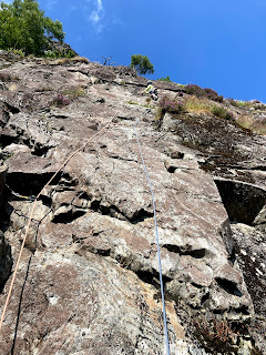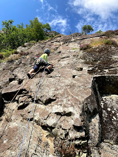 By mid afternoon, it was too hot to wearing rock boots, so we finished with a route that had a handy abseil descent, then went down to the river for a cooling swim.