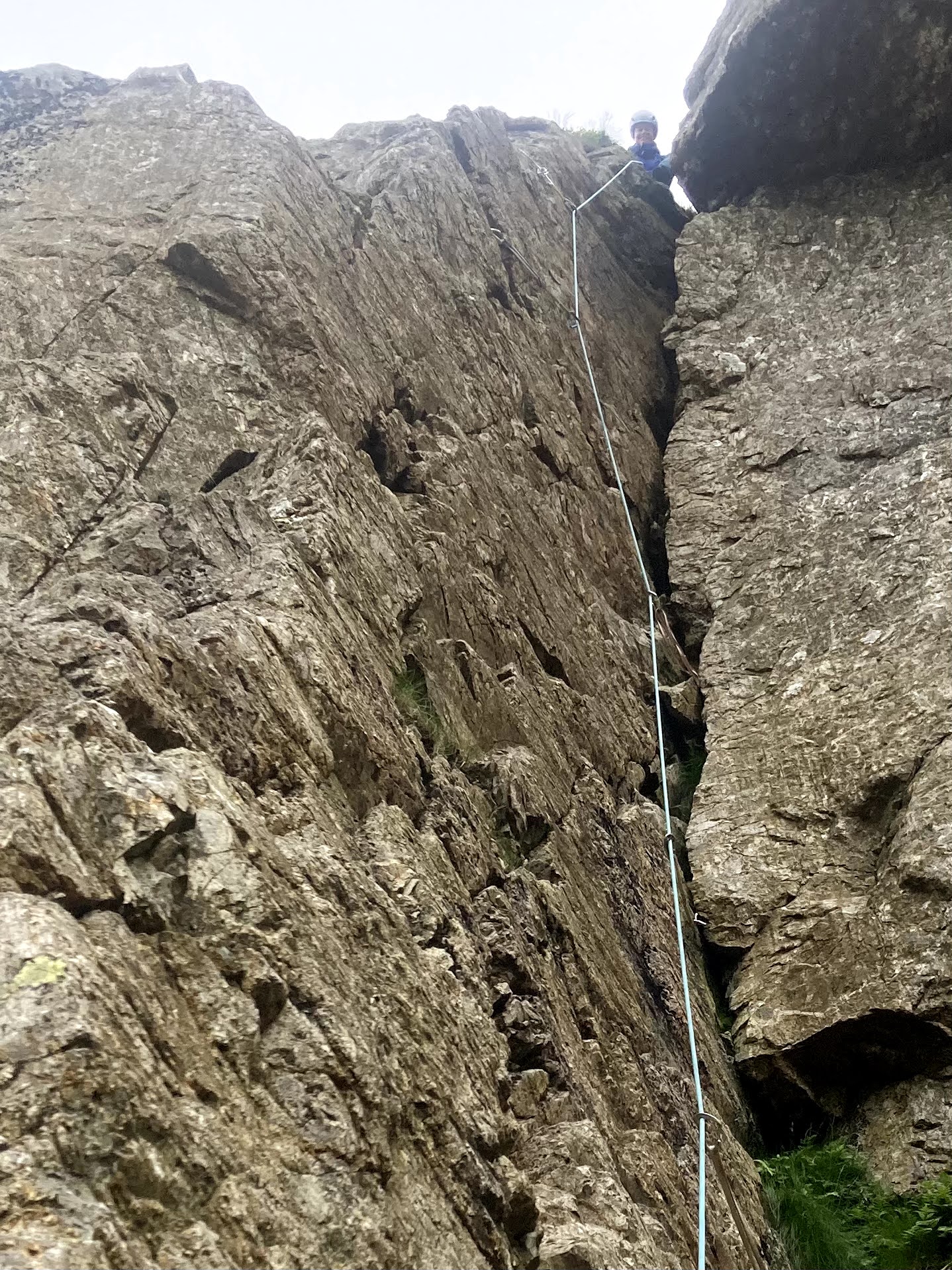 From the Pulpit, a short abseil (about 15m from an in-situ sling/krab), got us back onto the main mountain, from where it was only a short walk to the highest point in England.