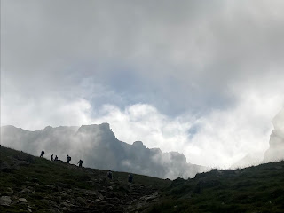 Awoke to full on blue skies and set off with high levels of excitement and anticipation. As we left our valley, we discovered the rest of the Lake District seemed to be covered in a think layer of cloud, which almost changed the plans, but keeping faith in the forecast, pressed on to Wasdale and began the hike up into the mountains as the clouds began to break up.