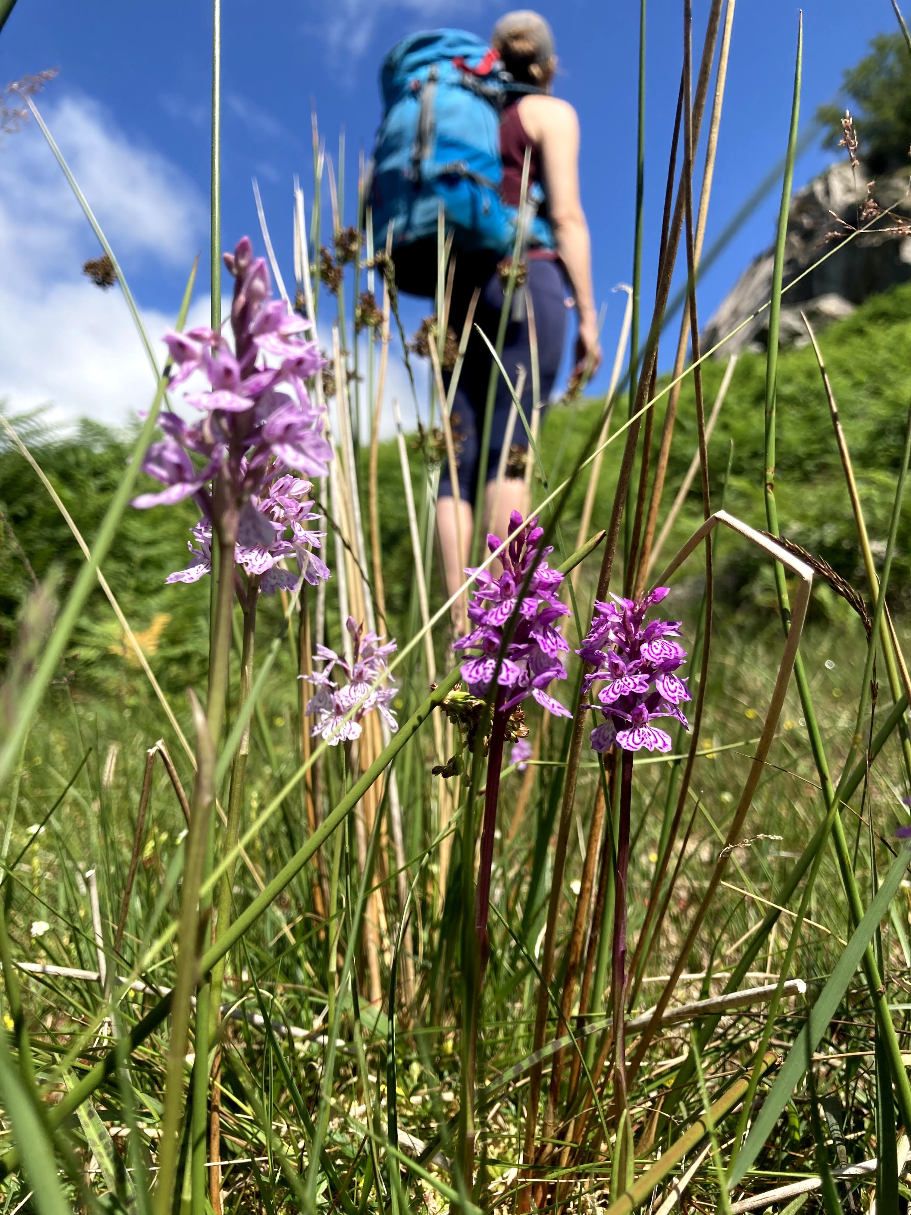 After some fierce bushwhacking (as well as passing several grassy areas laden with Orchids), we made to the base of the crag. At one point it looked like we might not make it!