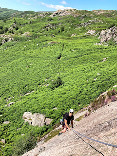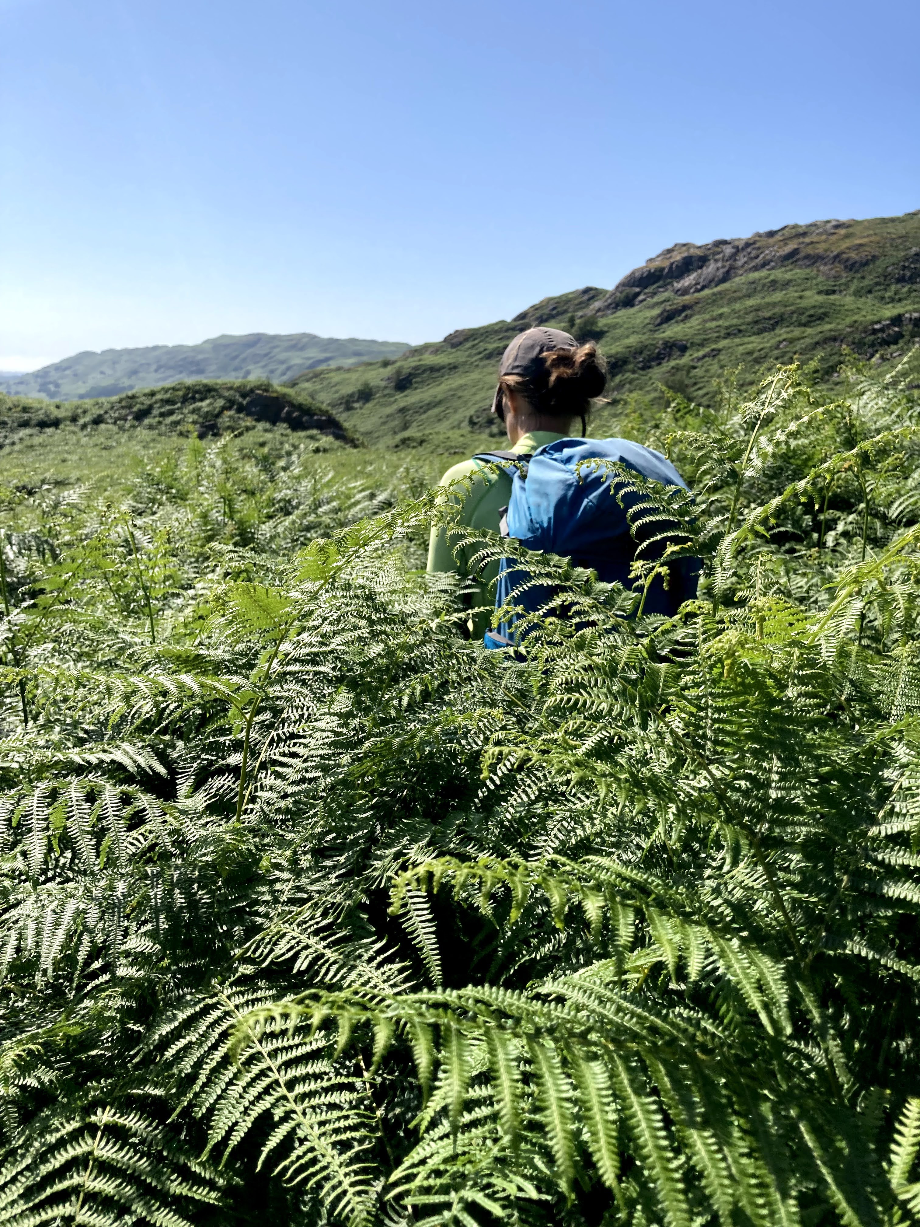 Judging by the height of the bracken ferns and the general disappearance of the path, I’d say that not many people are climbing at Hare Crag during the summer months!
