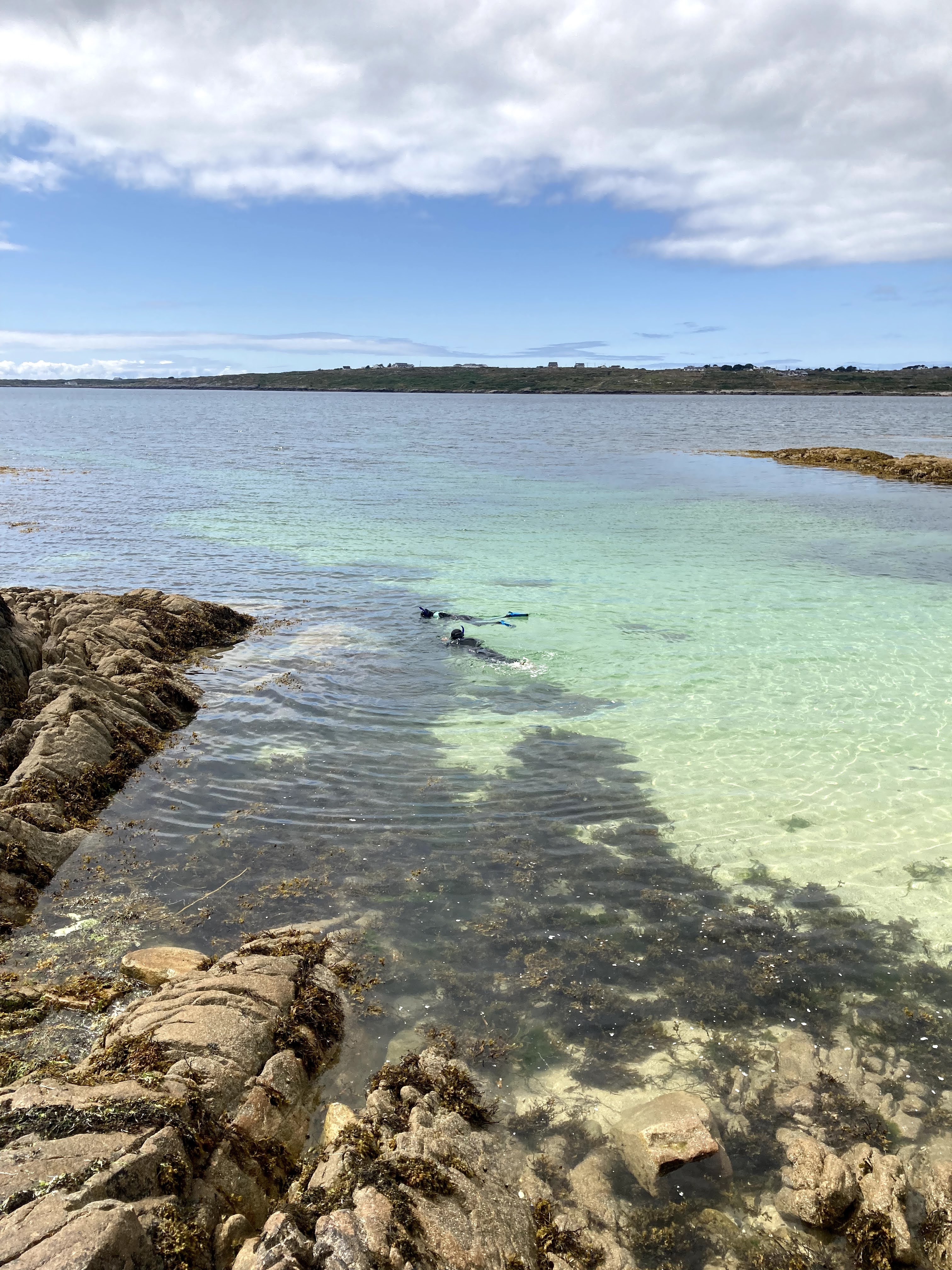 We didn’t get any underwater photos, but within sixty seconds of getting in, we were looking down at a huge blue lobster carcus, being dragged along by a crab. Later we saw a crab, the size of a large mole hill walking along the sea floor (sideways of course), then the big excitement came, when the large, blue form of a Tope Shark cruised silently and smoothly below us. It was over a metre long and a long way below us to cause us any (much) panic. We watched it for ages, as it crept around near fish and crabs, before disappearing off into the the deeper, darker waters. (we had to look up exactly what kind of shark it was afterwards).