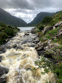 Well it looks like our rock climbing in the Burren is over for a while. Rather than hang around in the persistent heavy rain for the next few days, we’ve packed up and headed south where the weather is looking marginally better. It took about three hours, passing through Limerick to arrive at the MacGillycuddy’s Reeks – the mountain range that is home to Ireland’s Highest Peak. The closer we got to the Gap of Dunloe, the more the traffic changed to horse and carts!