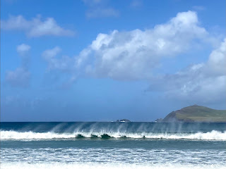 The good thing about this area being a peninsula is that there are beaches with differing aspects, so rather than struggle on at Inch Beach, we went to one where the wind was blowing off-shore and holding up the waves. It was a completely different scene.