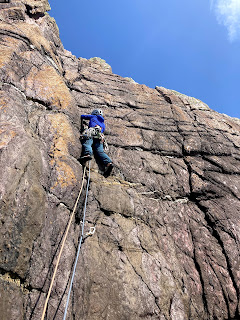 Timings, weather and conditions all came good for us today, allowing us to rock climb at one of the best cliffs in the region. A bit of logistics were required (an abseil rope being one and five euros to pay the farmer being another), but it was well worth it.