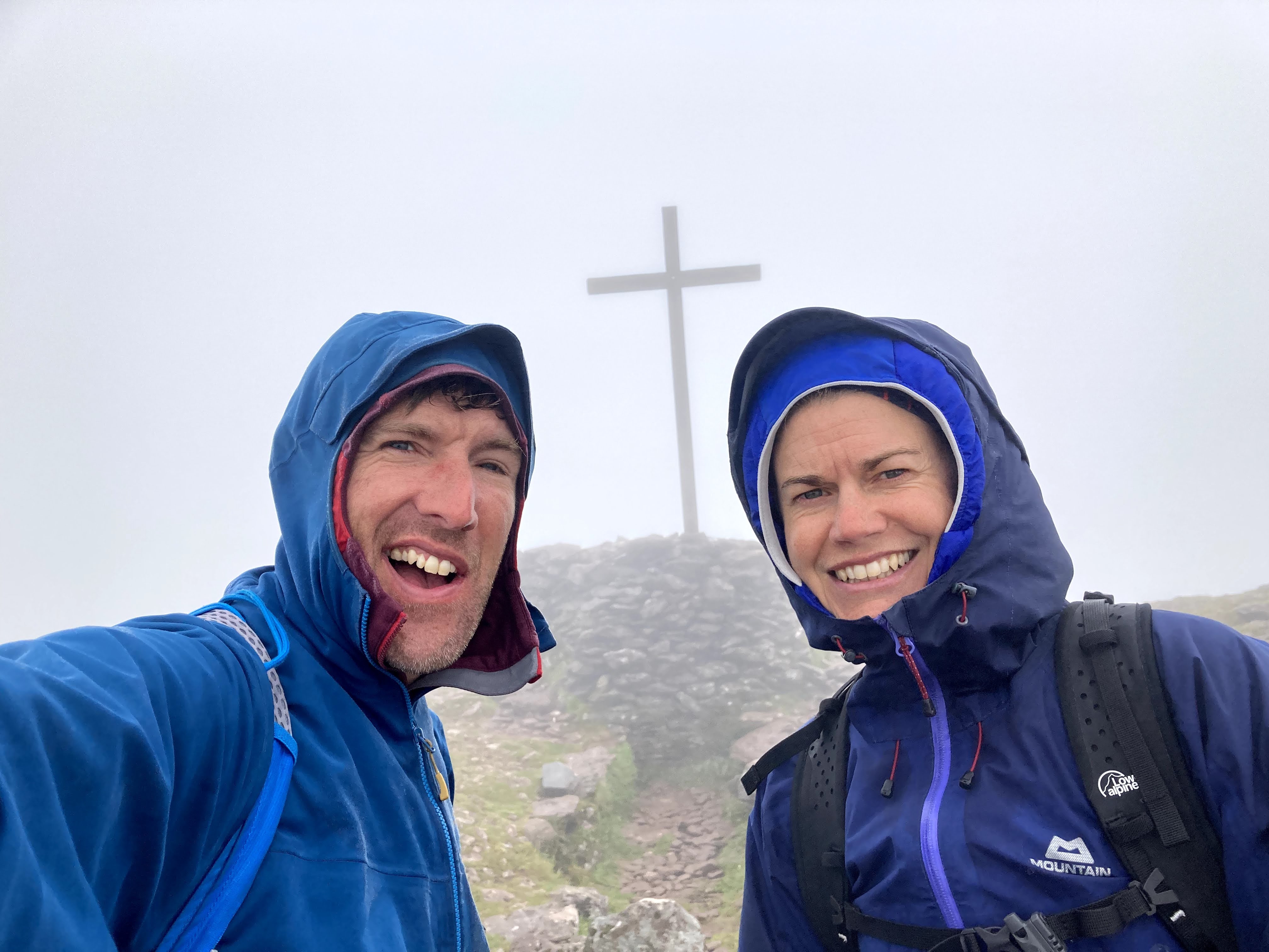 It wasn’t exactly raining, but we were inside a cloud, so it was full waterproofs on by the time we reached the top.