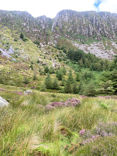 The Great Gully Ridge of Glenmalure, looks pretty good in the guidebook to Irish climbing – so good in far, that four pages have been dedicated to documenting the route along with a couple of alluring photographs. We set off, after a night in Glendalough to make an ascent along an easy forest track that led up into a beautiful glen that is hidden from the valley below. The ridge soon came into view and we followed the directions to the point where it said leave the track and bushwhack up to the base of the ridge.
