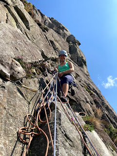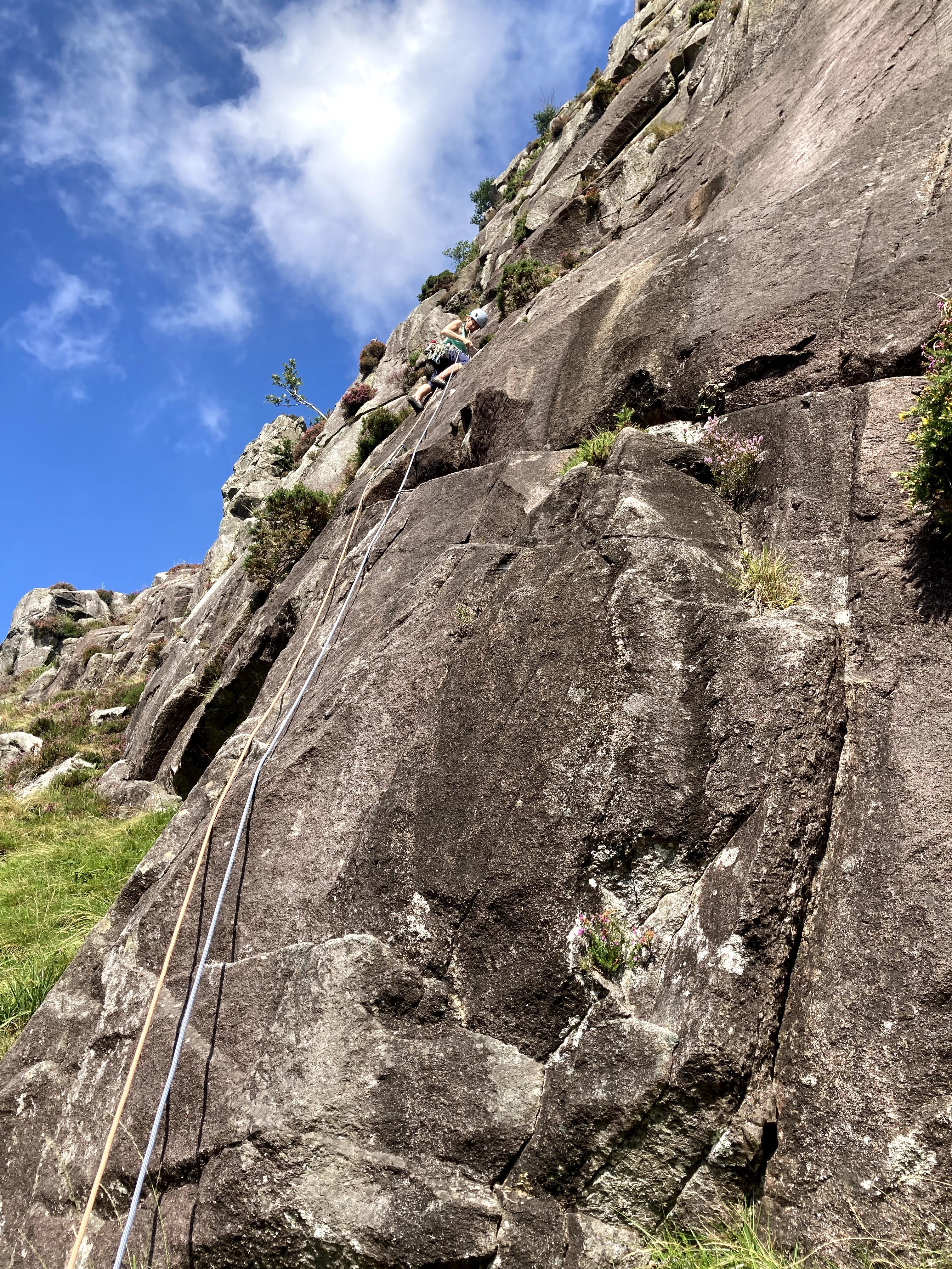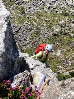 Clare led the first pitch up the slaby base of the crag.