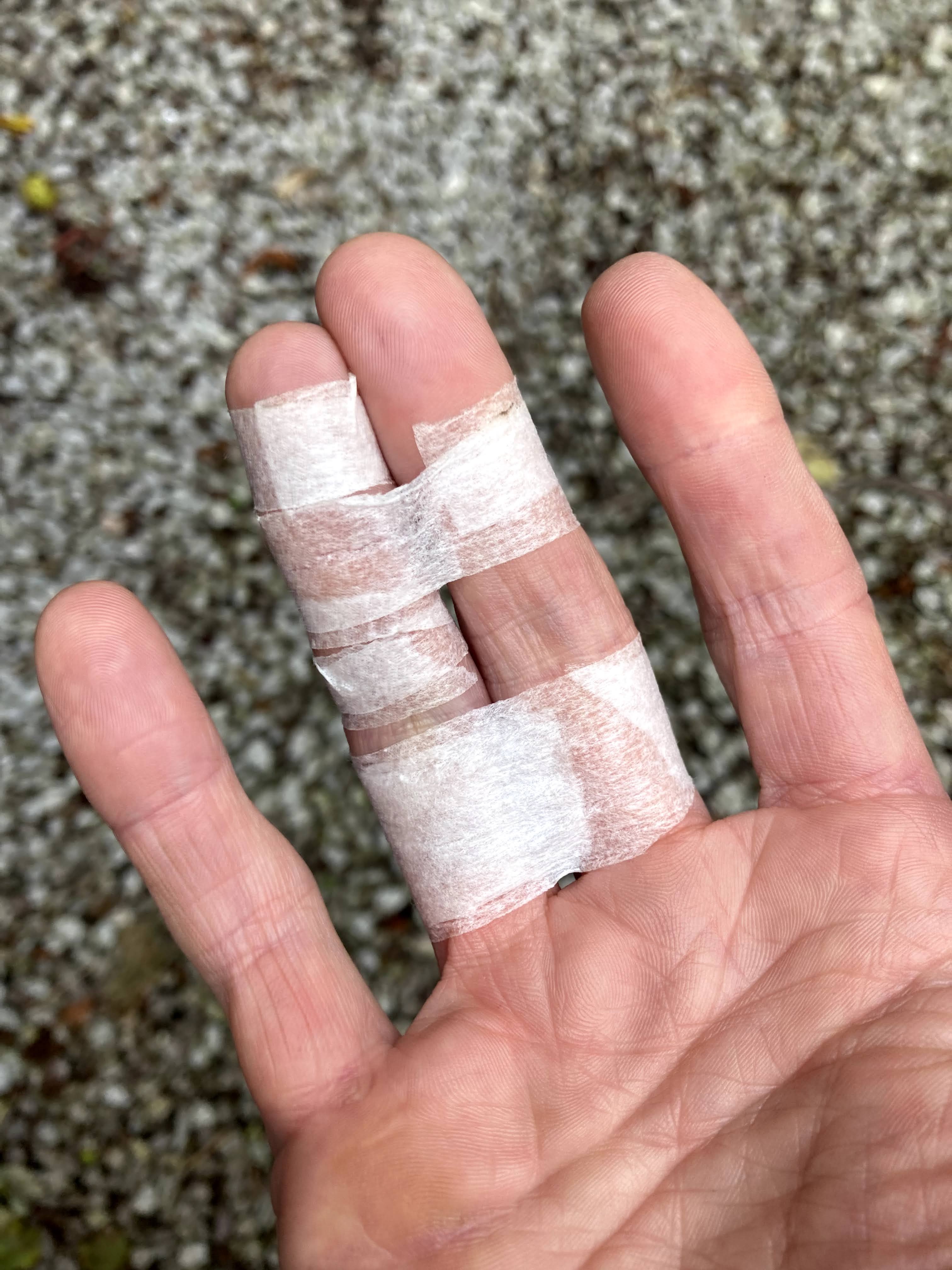 Had a bit of finger trouble today was well, which is not good. The bruising has gone down now though at least. Made climbing that extra bit awkward, only having three fingers!