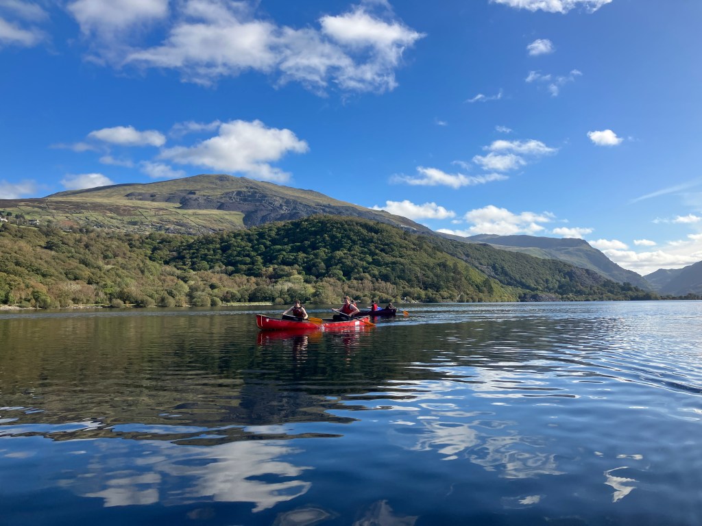 The day started with a beautiful drive along the coast as we headed into the sunrise, while a rolling mist flowed out of the Conwy Estuary. As the day brightened (and warmed!) up, I spent a magical morning floating around the lake teaching some expedition skills to a group of canoe students. When conditions are this good, it’s very hard not to be having a great time!