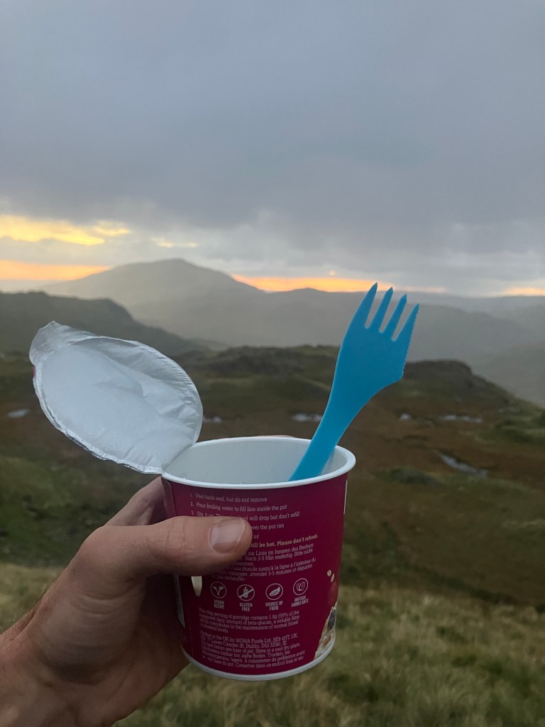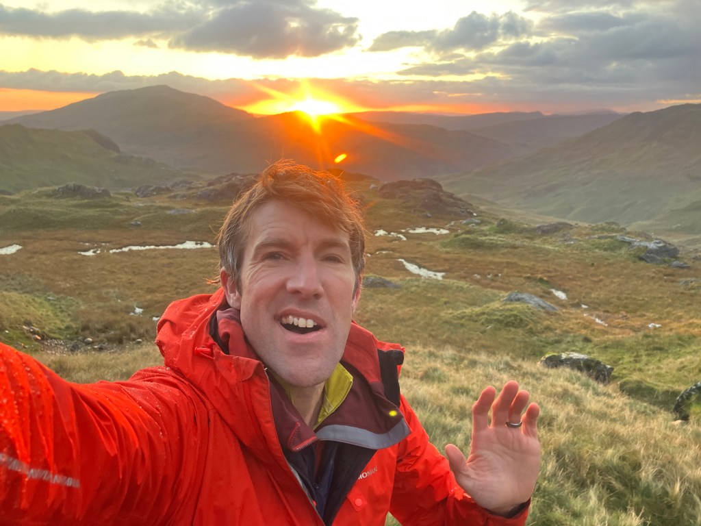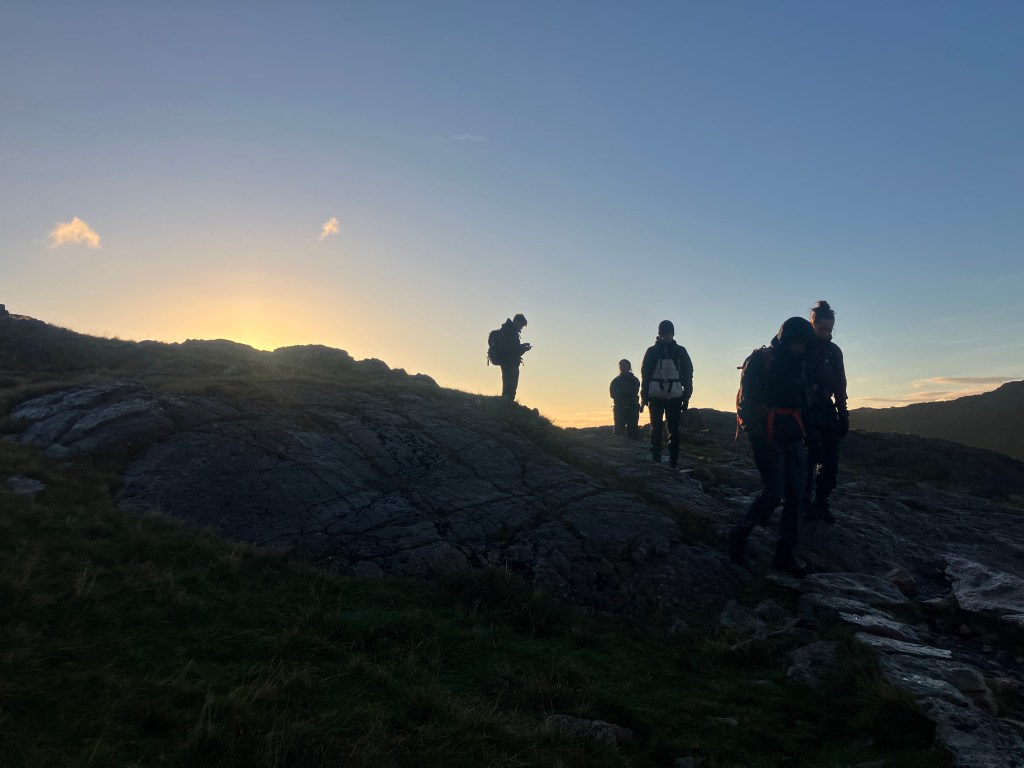Without the need for head torches we continued up the mountain in a beautiful light that reflected on the hillside as the skies began to clear.