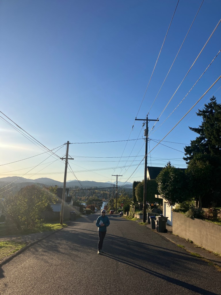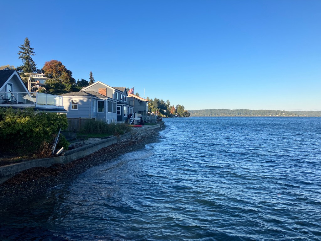 We followed various loop trails and worked up an appetite for a (delicious) lunch in ‘Chipotle’ the famous Mexican Food takeaway, (very much recommended by Clare on her previous visits!), we returned home then had a great walk through Bremerton and back to the water.
