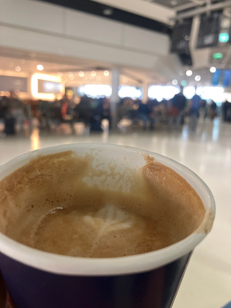 At Manchester, we paused briefly to get some food and yet another cup of coffee, which perked us (or at least Clare) up for the final leg of the journey.