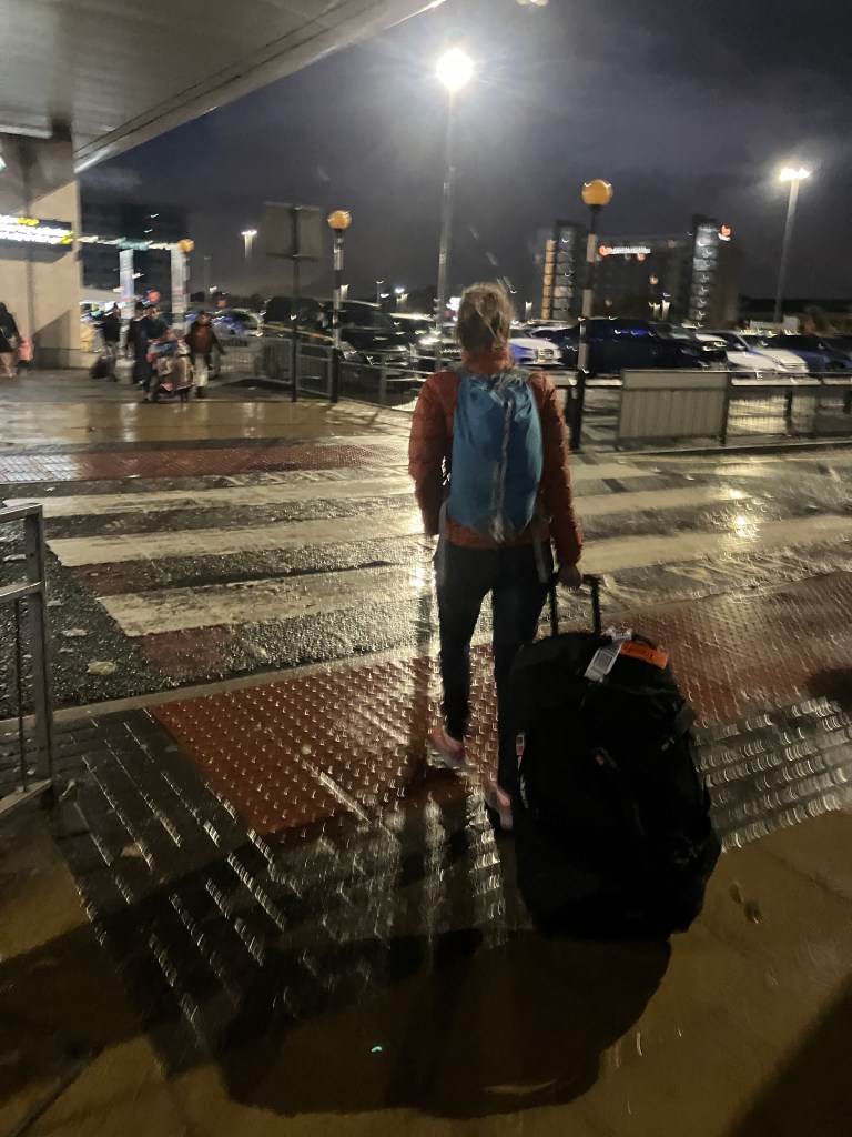 The night and day have rolled into one continuous movement across the planet. We managed to get a bit of sleep over the Atlantic, while curled around each other, before swapping planes bleary eyed in Dublin.
