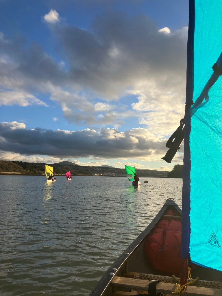 We set off from Beaumaris with sails up and boats packed for the voyage. With time and tide on our side, we practiced tacking back and forth across the wind.