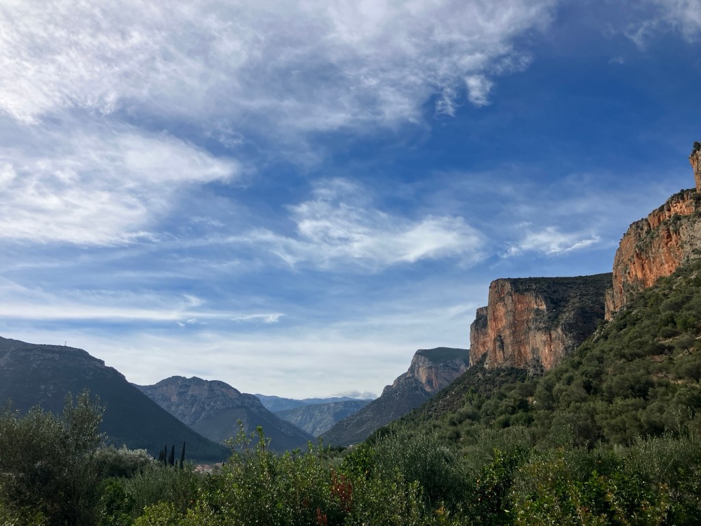 Our final crag of the trip was located up a remote valley, which gave a really wild feel. In the distance (if you zoom in you’ll see it), the big Greek flag was flying from the cliff top, marking where we had our picnic on New Year’s Day.