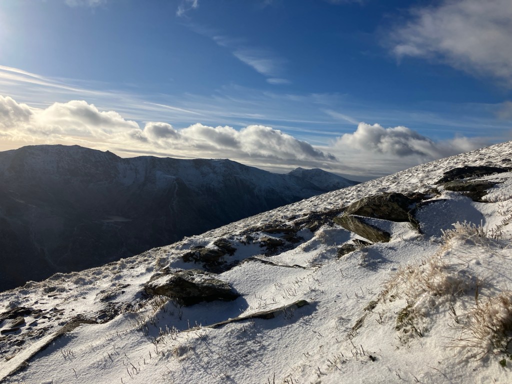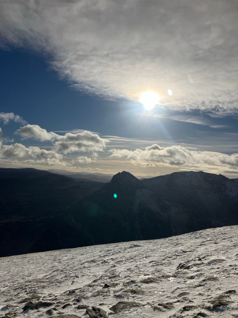 The views were great, and as predicted, we had sun on our back and not too much wind chill. It’s the first winter mountain I’ve been up this year and my legs certainly took a bit of reminding on what to do! Walking uphill has not featured much in our recent activities! Still, with plenty of stops for hot drinks and some left over pizza from last night, we made steady progress.