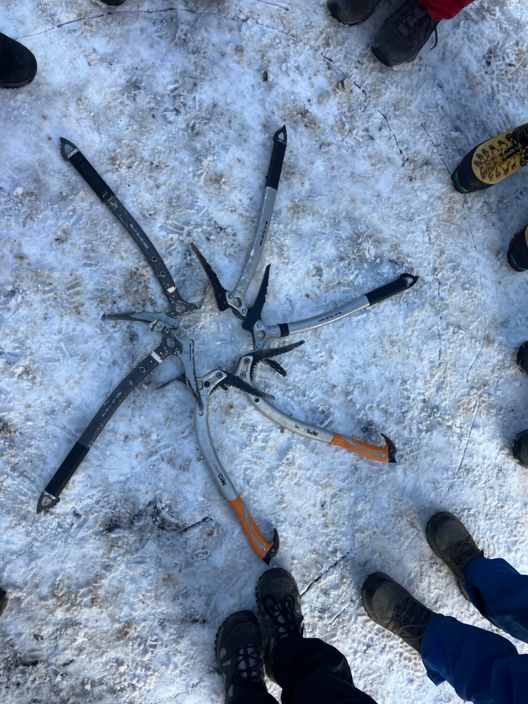 We completed our day with a walk around the lake in our crampons, getting used to moving on the frozen terrain.