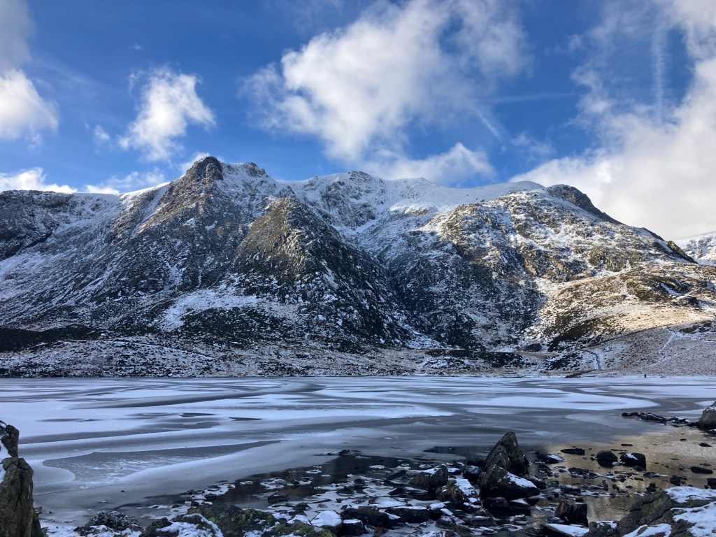 It was a much easier walk up the path than a few nights ago under cover of darkness! And it was great to be able to see the views and the ice falls that had formed in the back of the Cwm around the Devil’s Kitchen.