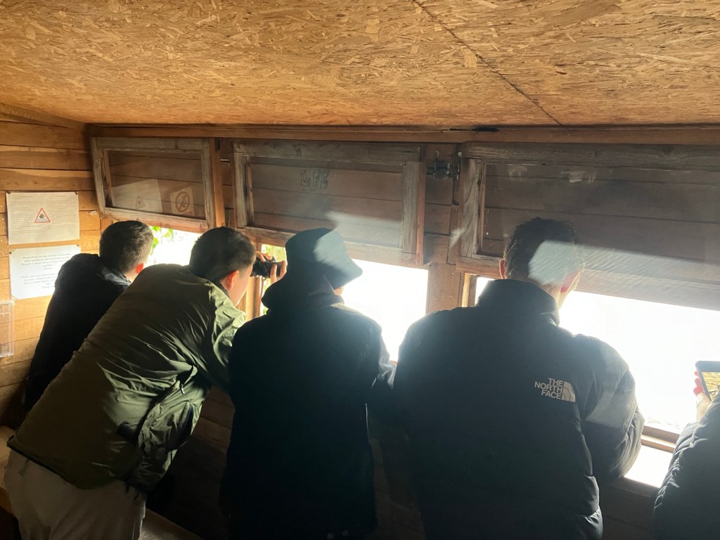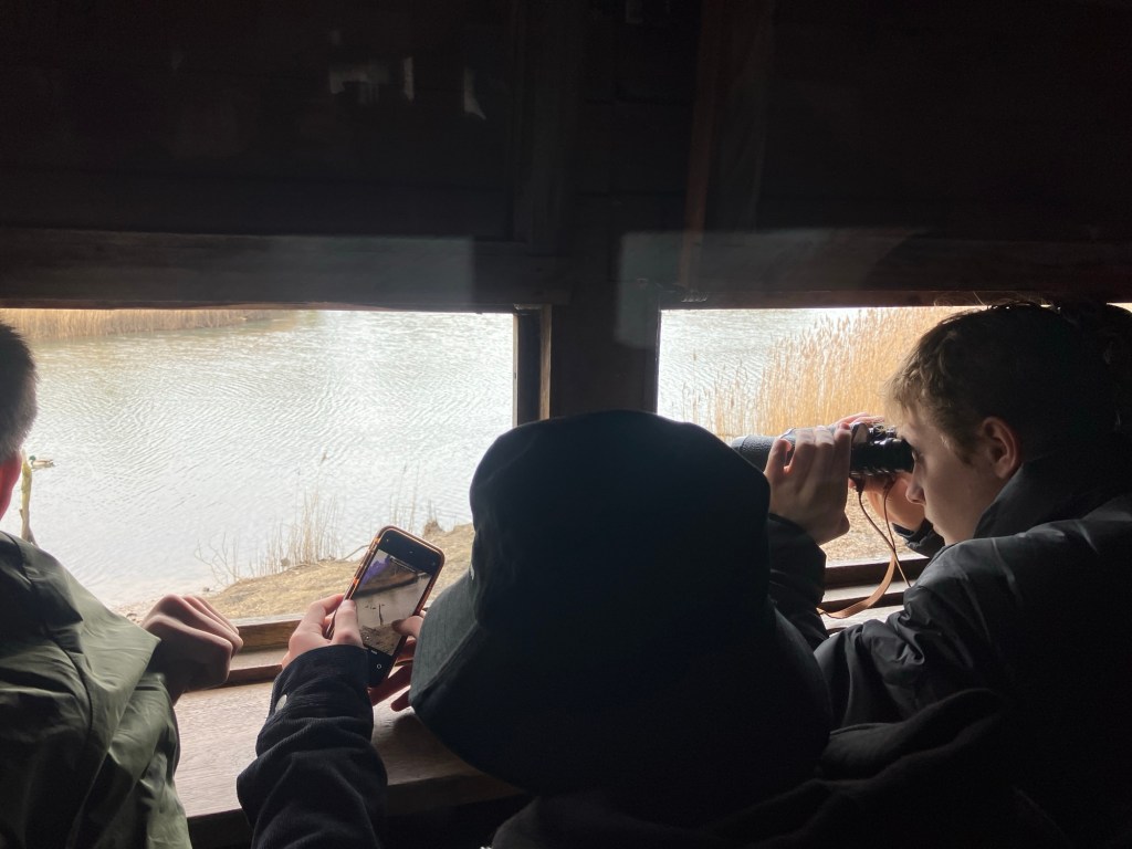 In a happily unplanned way, I ended up with another group of students at the Bird Hide near the Menai Straits again this weekend. How would have thought that a lively group of youngsters we get so transfixed with such an activity!