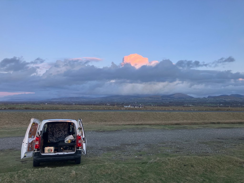 It was looking dry back at the van though, so we decided to stay for the sunset. The wind was making things feel much cooler than yesterday, but we had a clear view of the horizon this time and it looked like some good colours might be on the way.