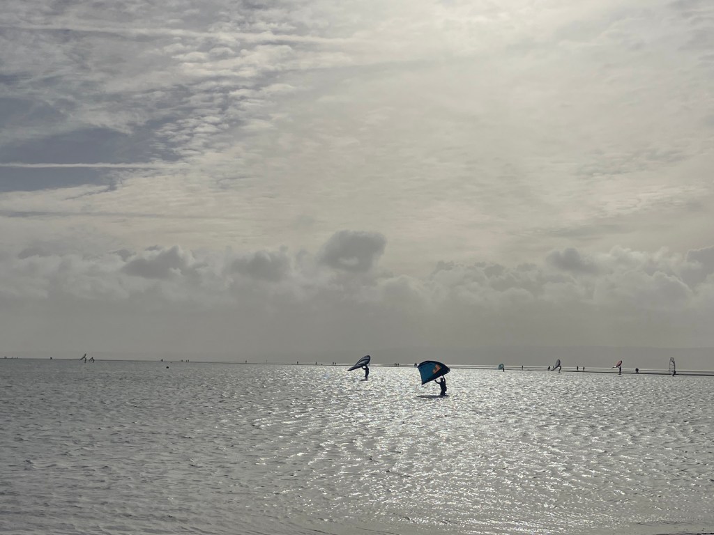 The recent rains, had left large puddles across the muddy cycleway, so we were soon speckled in mud despite our mudguards catching most of the debris. After a break sitting watching a kestrel hover in front of us on the cliff edge, we made it up to West Kirby Marina, where some folk wing/wind surfing and other were hiking out Hilbrand Island on the low tide. It wasn’t a day for model boating in the pool!