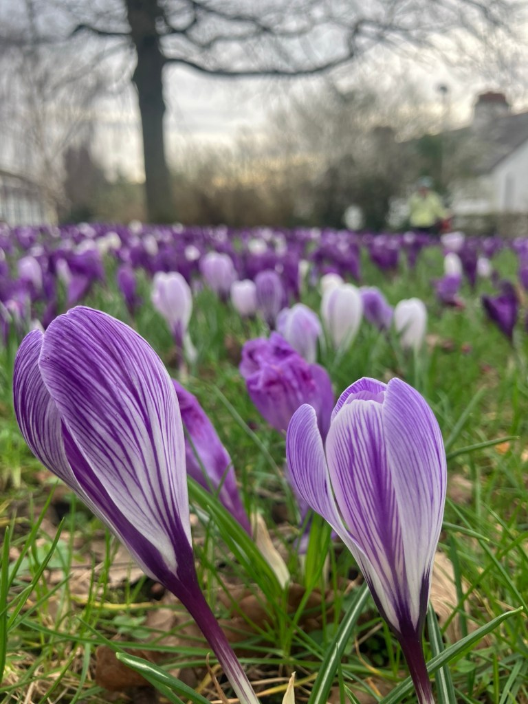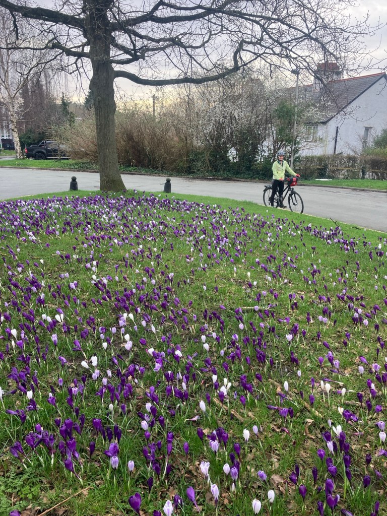 It was a good choice. The roads were busy, but the drivers generally tried not to kill us, but best of all was checking out some of the big houses in the area and stopping to admire this mega crocus patch!