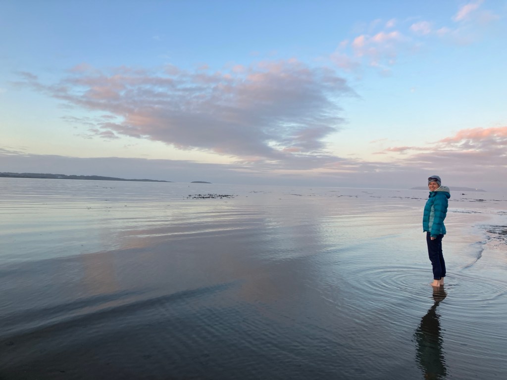 But just before the sun set, we both ‘downed tools’ and drove down the hill to the coast to catch the last of the light and dip our toes in the water. The wind had dropped completely and with the high tide, it made for a very tranquil scene.