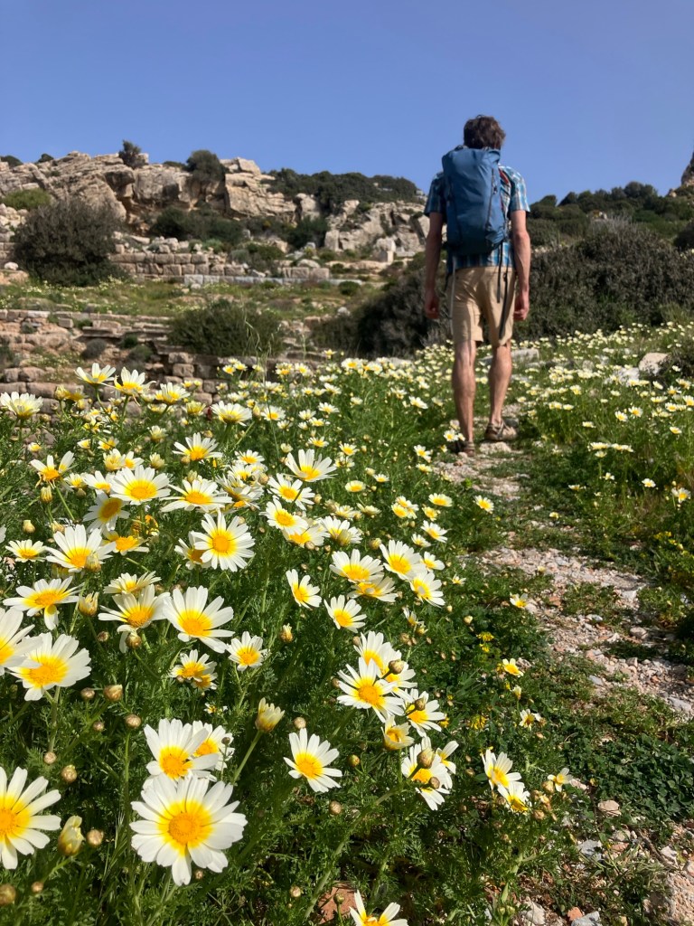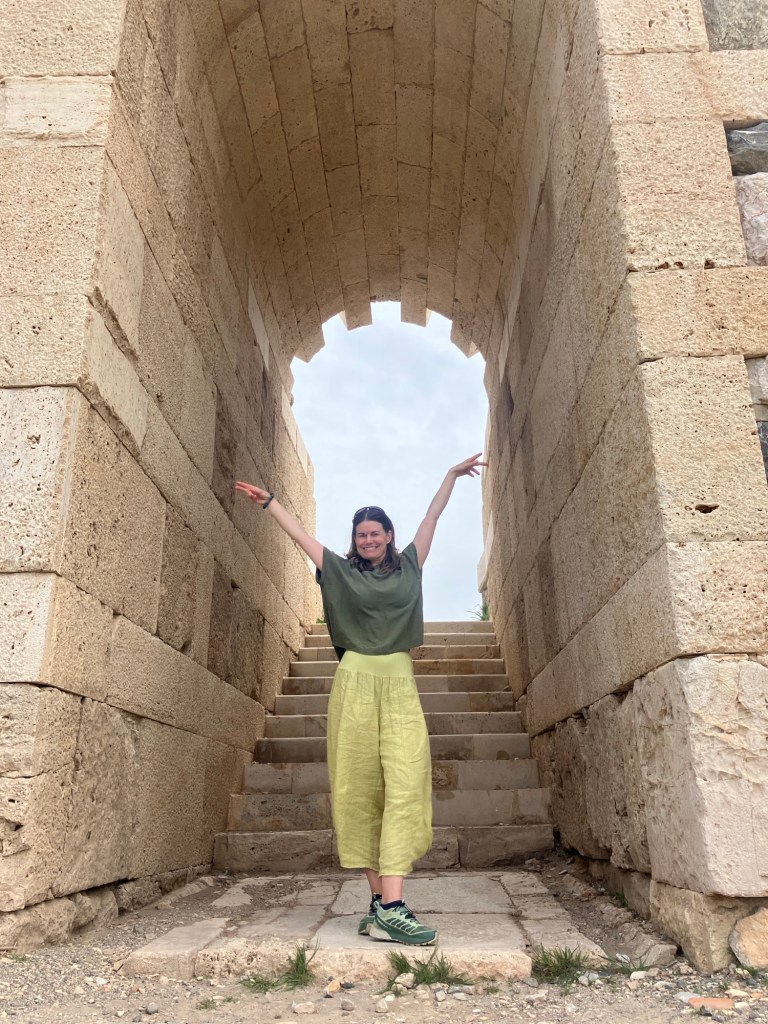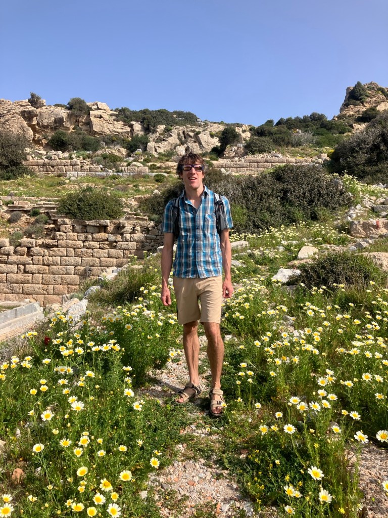 The amphitheatre could seat around 5000 people! It was amazing to see how the acoustics of the shape really meant that a voice from the stage could easily be projected without modern microphones. The site has has various teams of archaeologists visiting since the sixties, with the most recent dig being in 2016. However, while some places are being uncovered, the rest is being overgrown by a massive amount of wild flowers. It won’t be long until it’s all covered over again!