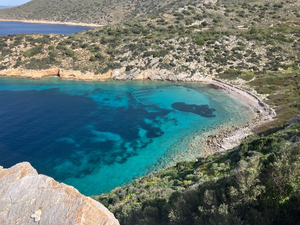 The city extended down to the waters edge and had two opposing harbours. Outside of the harbour walls, were beautiful clear beaches. We chose the nearest one for an afternoon dip! I found some pottery remains and a few carved blocks, but no valuable gold coins or the like, despite many hopeful dives down to the sand.