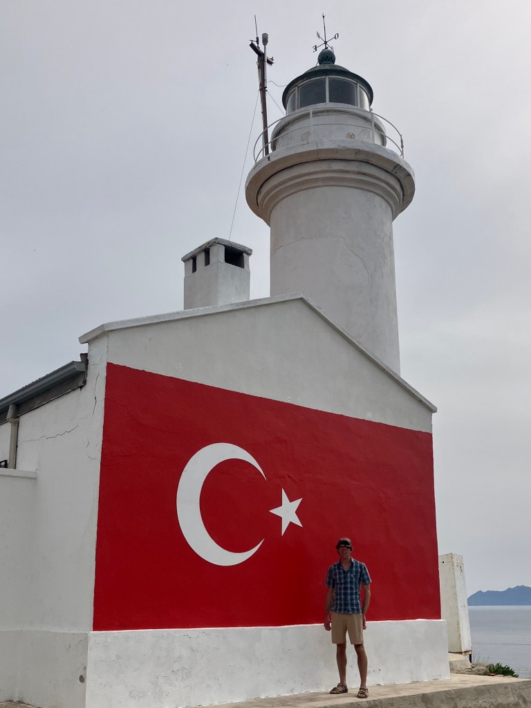 This is the view out to sea of the neighbouring Greek Islands from the light house.