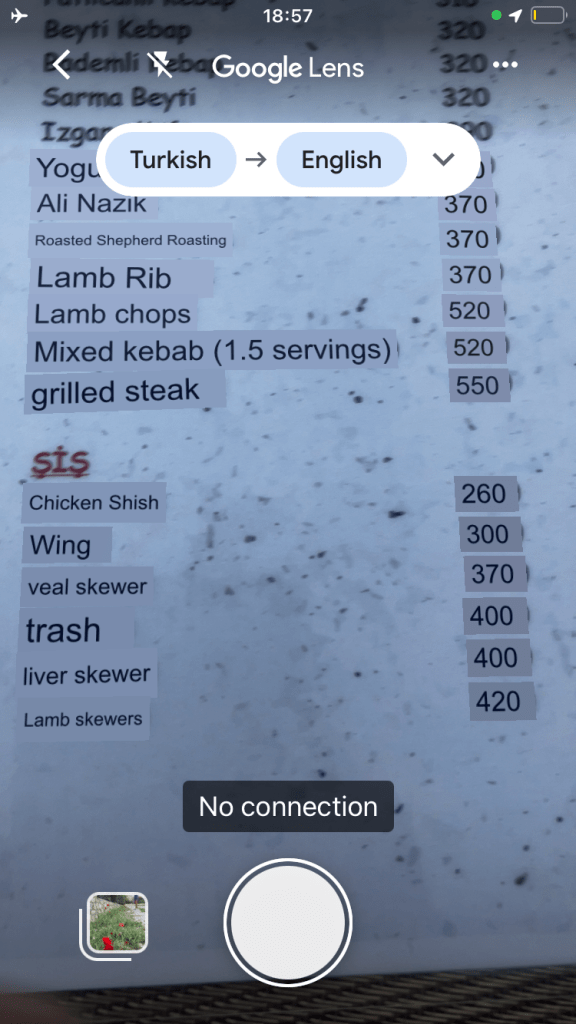 It was getting late by the time we got home, so stopped off at at nearby restaurant for a kebab. It was fresh, delicious and gave some good translation giggles when we tried to order. ‘Cigarette Pastry’ and ‘Trash’ seemed worth avoiding! Ha ha!