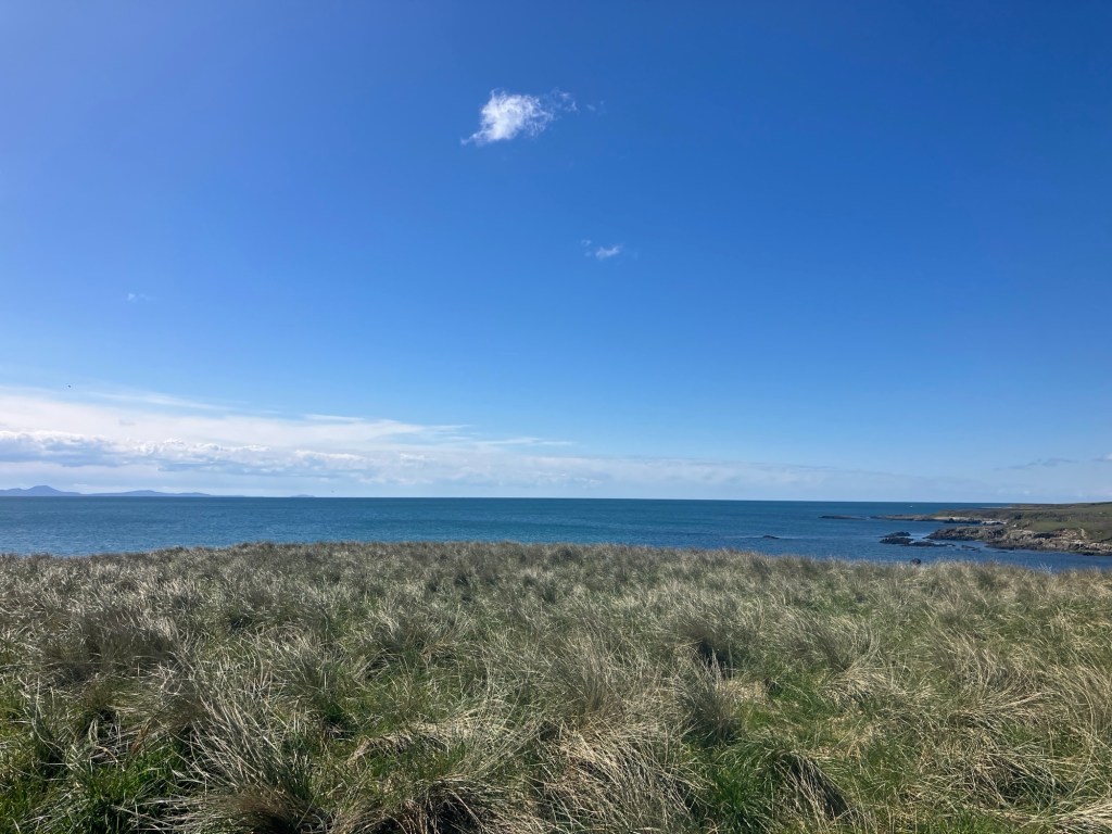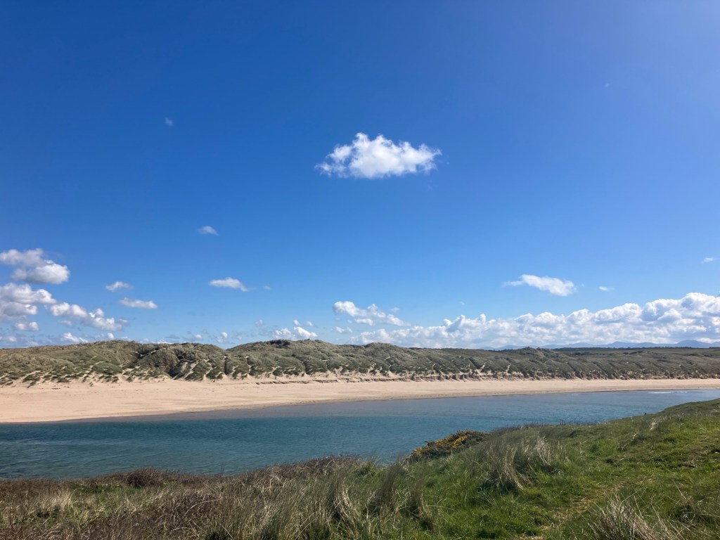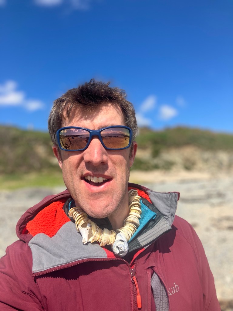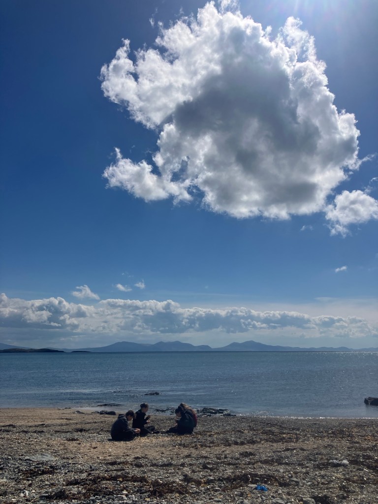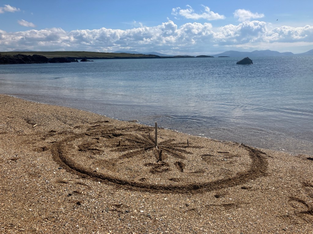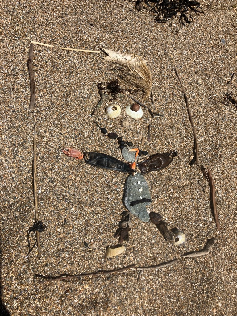 Once things had warmed up a bit, I spent the day over on the west coast of Anglesey. Here we were sheltered from the easterlies and able to spend a very creative day on the beach. Here’s my best artistic efforts, made entirely of things ‘within reach’ on the beach.