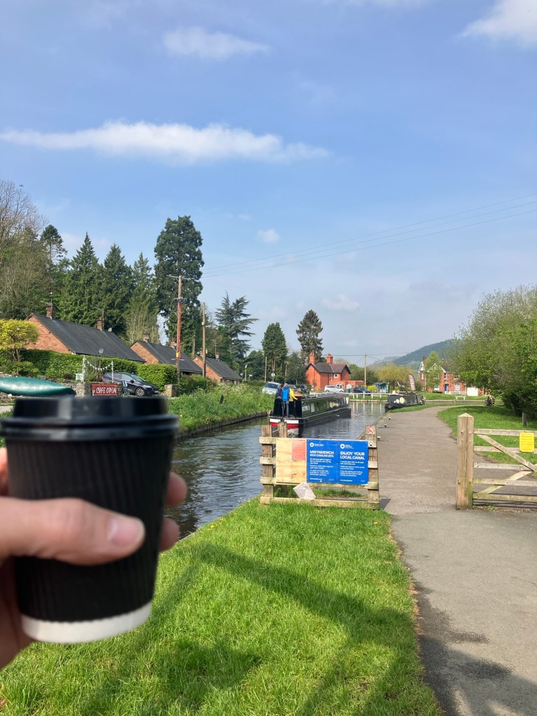 It was a lovely warm day spent at a relaxing pace. I even managed to get a cup of coffee from a barista on a barge that we passed! T-shirt weather all day, a fun team and great views. Happy days!