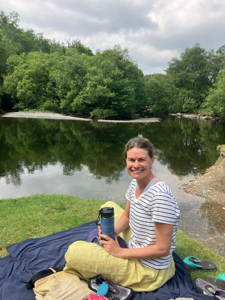 I was very keen to get out up a cliff somewhere, but there was more pressing office work to be done first. Working indoors on such a glorious day was made better by having the option of a lunch time river swim with Clare though!