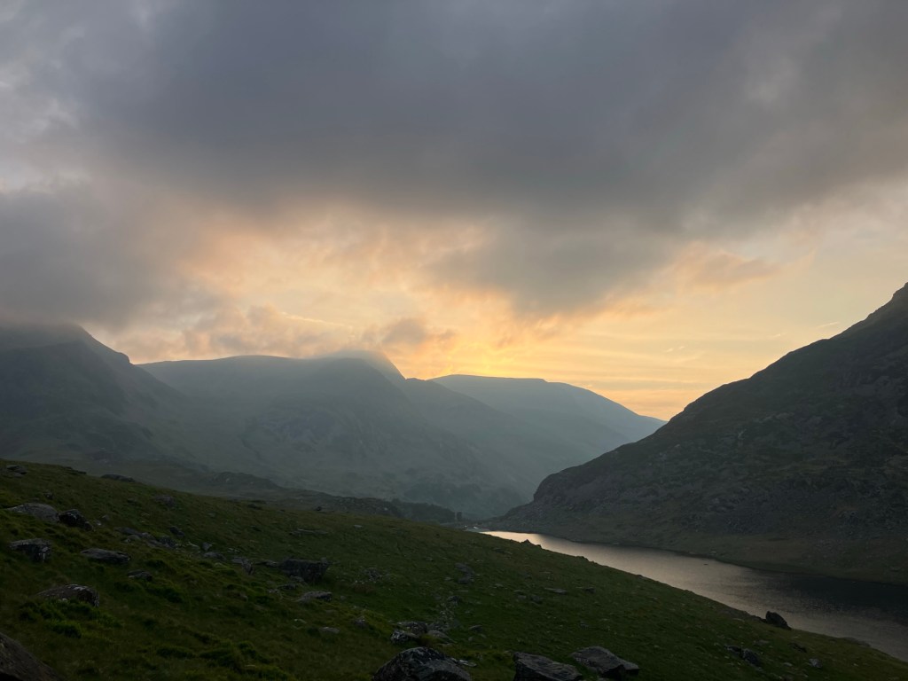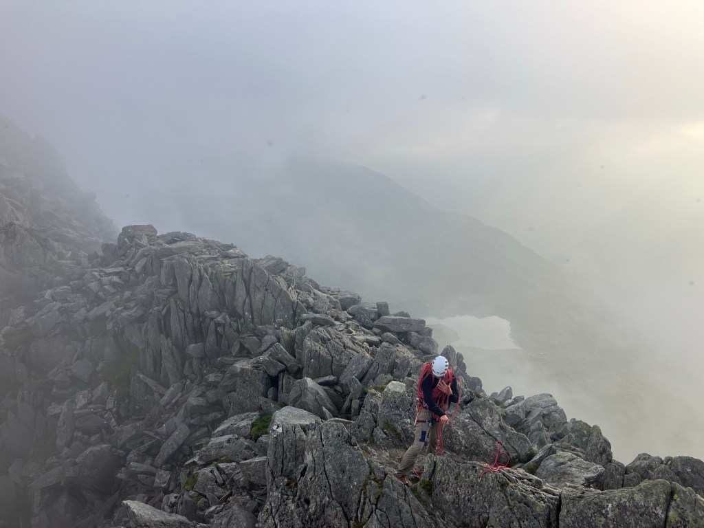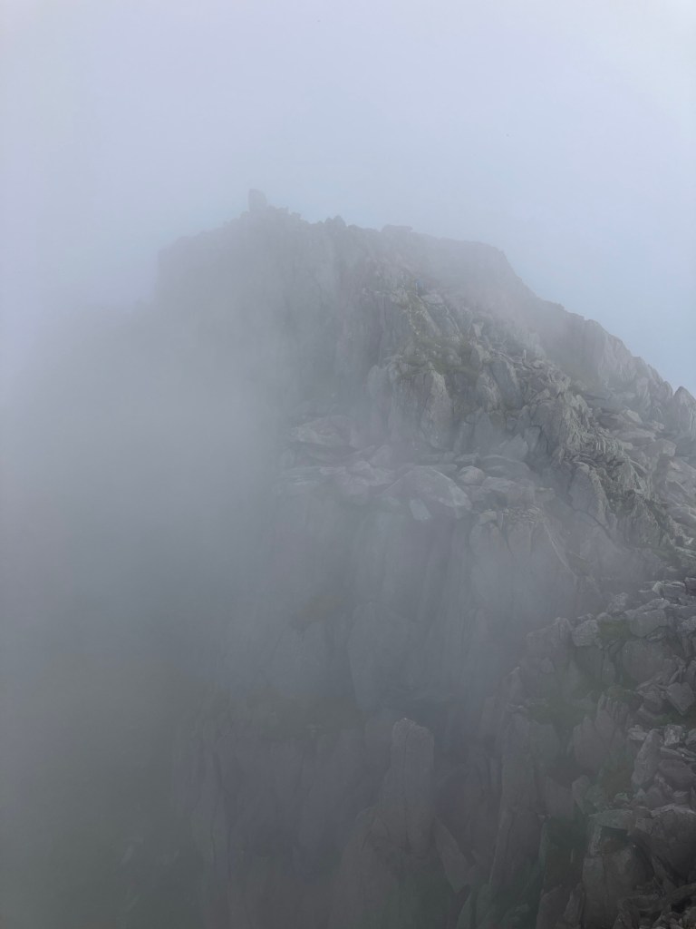 We went as fast as we could, conscious that we’d popped out for a quick climb and now found ourselves on top of Tryfan! My one snack bar and small bottle of water were only just enough to keep me going in the warm and muggy conditions.