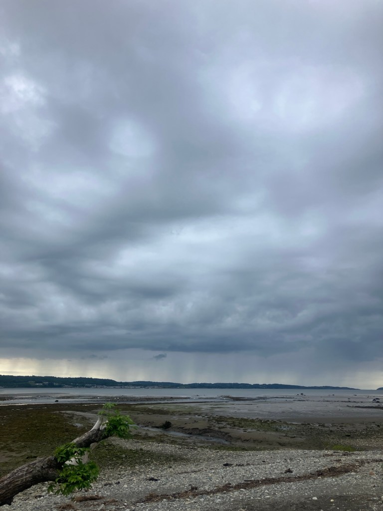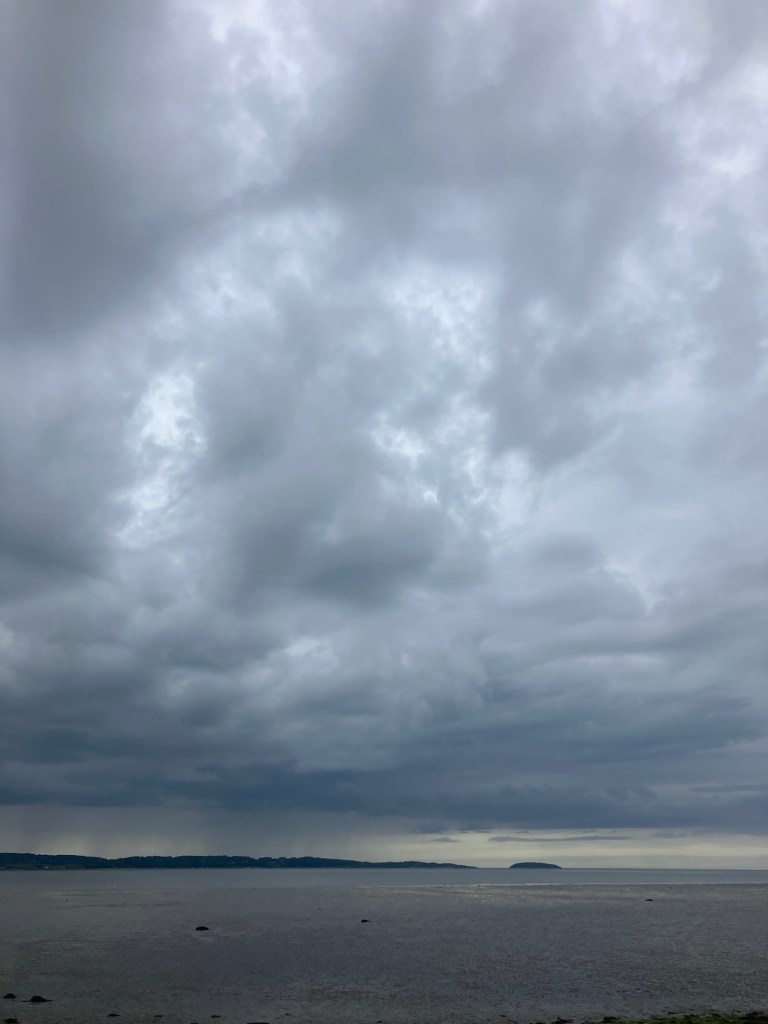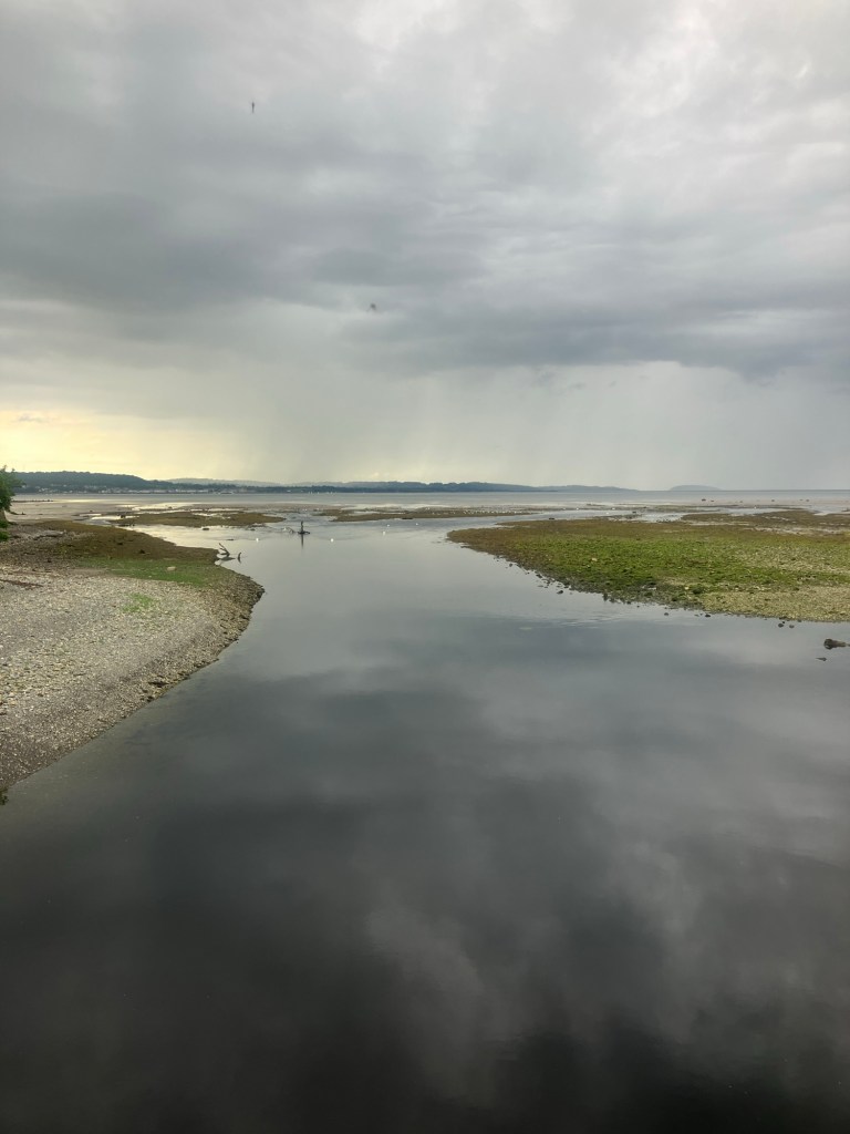 Finished another manic day in the chaos of The Cottage building project with a restorative and peaceful walk along the beach. Squalls of rain passed dramatically by over Anglesey, but we stayed dry.