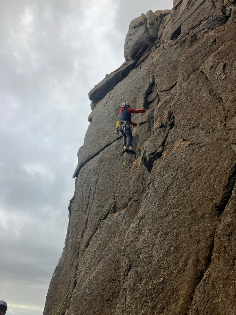 We had the place pretty much to ourselves as we guiding the pupils up and down the cliffs. The was occasional drizzle and occasional bursts of sunshine and the light faded. Below us a big seal played in the waves. Dave and I even got a bonus climb as we had to make one final descent to free a stuck abseil rope while the excited yet weary students headed off to the bus.