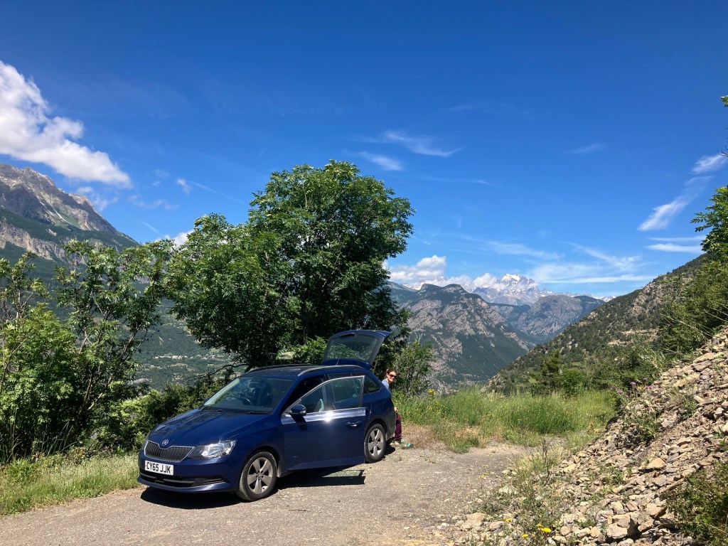 Is thought we could traverse the hillside from the hideout, but after a few minutes, tarmac gave way to gravel and we aborted, opting for the safer route which drove down to the valley and back up again, via many switchbacks. The road ran out again for the last few hundred metres, so we parked up and walked the last bit to save any undue stress on us or the car.