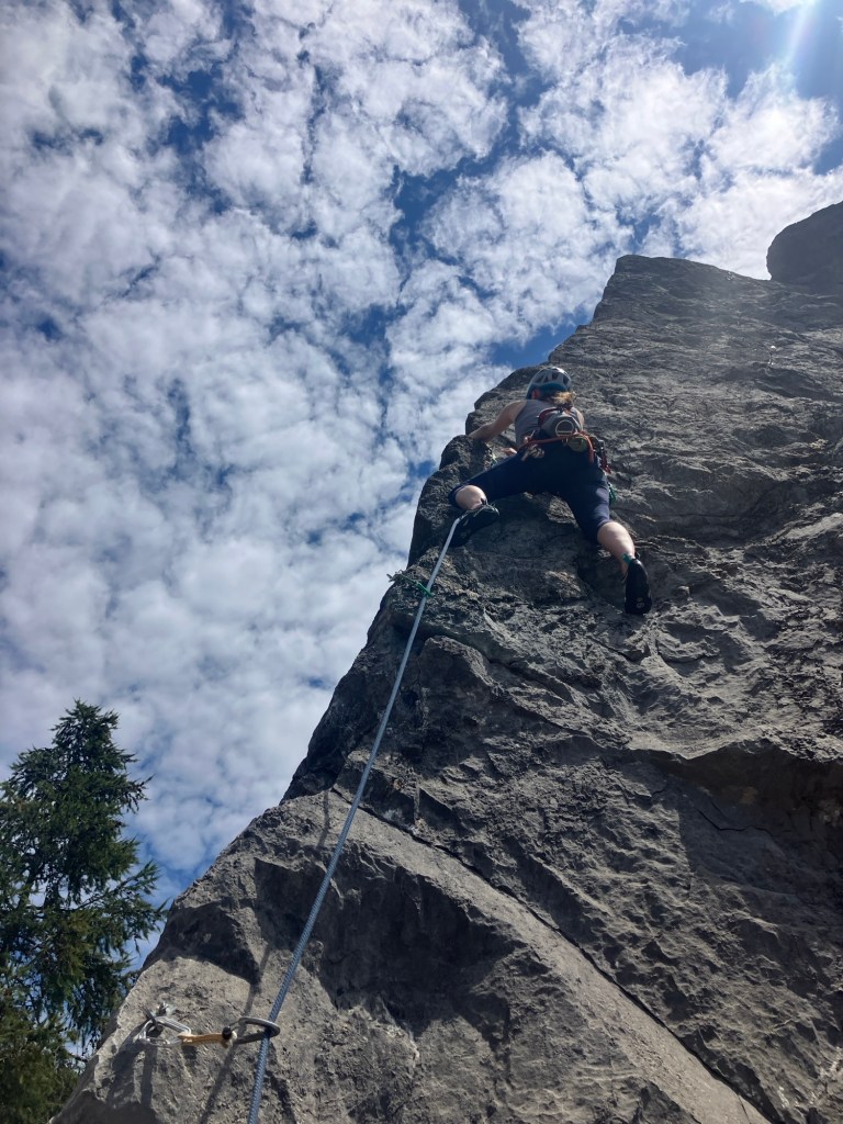 We climbed on the front face to begin with, then the tricky arete, before moving around into the shade as the day warmed up and it became too hot to climb in the sun.