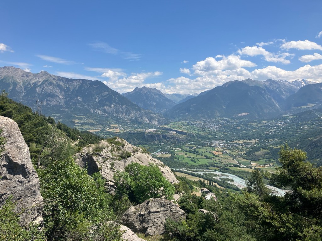 Another fine alpine day, another fine alpine crag, and another fine alpine view! There was a reasonable amount of switchbacks to negotiate, but it was worth it, especially as the you can park practically next to the cliff. The the centre distance of the photo below you can see Mont Dauphin and just left of that is our house.