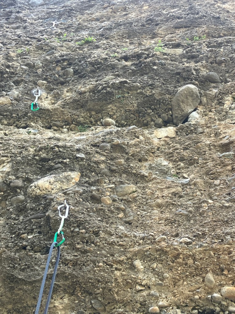 It was pretty busy at the crag, which gave it a strange vibe, but the climbing was fantastic. It took a route to get used to it as it all looks so improbable! Some ancient cataclysmic geological event caused a load of river beds to get washed away and then set like concrete. The cliffs are over 40m high with pebbles and boulders of all shapes and sizes glued together in a random matrix.