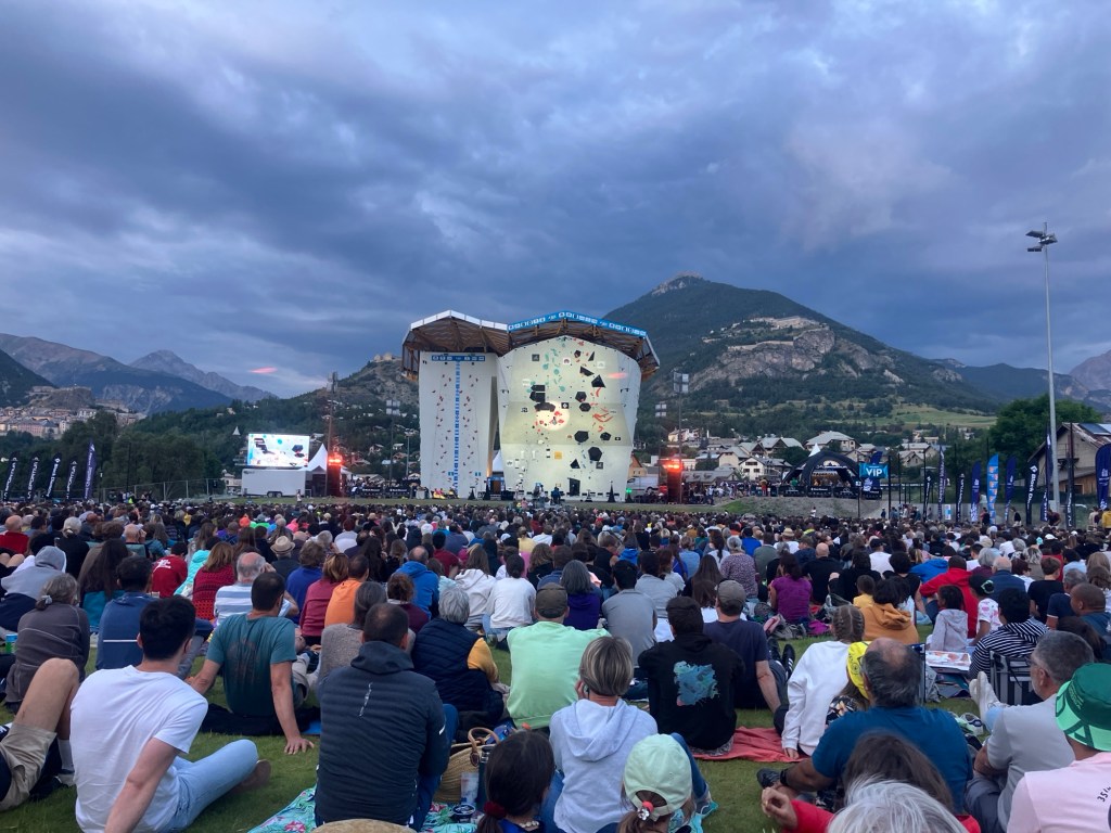 Since being in France this summer, and all by chance, we’ve been lucky enough to attend some major sporting events. Having already watched the football world cup on a big screen in the valley, today the Tour de France passed through our neighbourhood and the finals of the climbing world cup took place nearby in Briancon. The day needed a little bit of planning, so we opted to get up early and drive to a nearby crag before the road was closed for the bikers.
