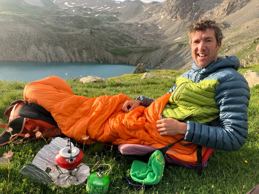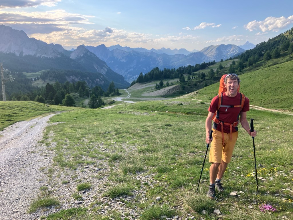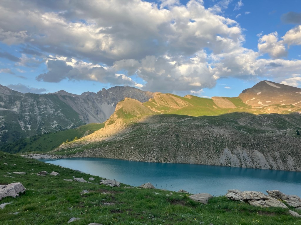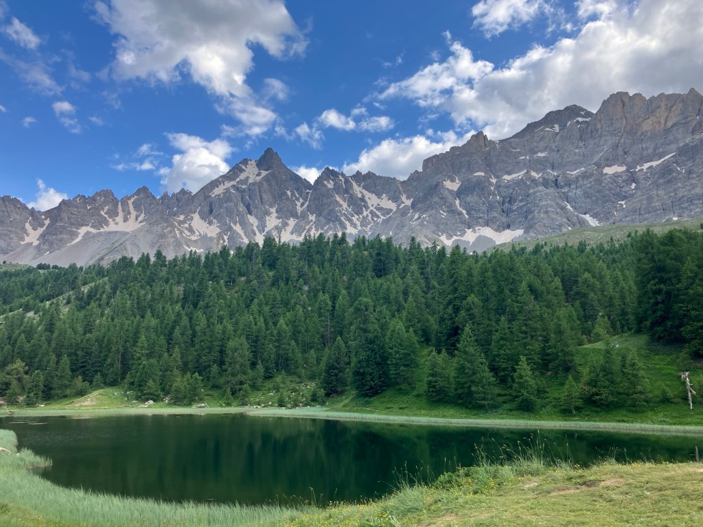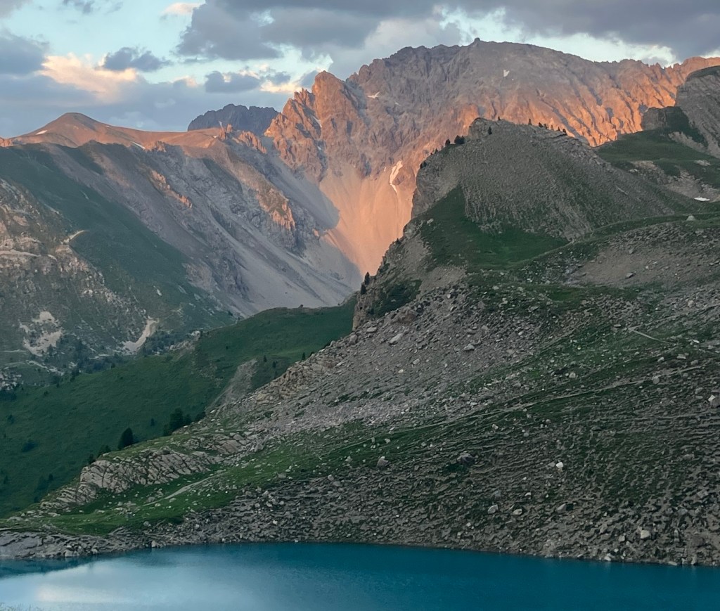 We’d planned on going on an overnight adventure in the mountains, so spent the afternoon, relaxing, getting some kit ready and letting the hot temperatures pass by. Then just after mid afternoon, we drove up to the village of Ceillac. On the way we picked up a hitch hiker, who turned out to be a trainee mountain guide. He looked pretty tired and as we talked about climbing, he explained that he’d just climbed a new 300m route in the mountains, with technical difficulties of 7b+! Once through the high alpine town, we parked up at Chalet Melezes, where a trail takes you up through some nice shady forests. You can height quickly and after leaving the tree line came across a herd of horned sheep and Lac Miror.