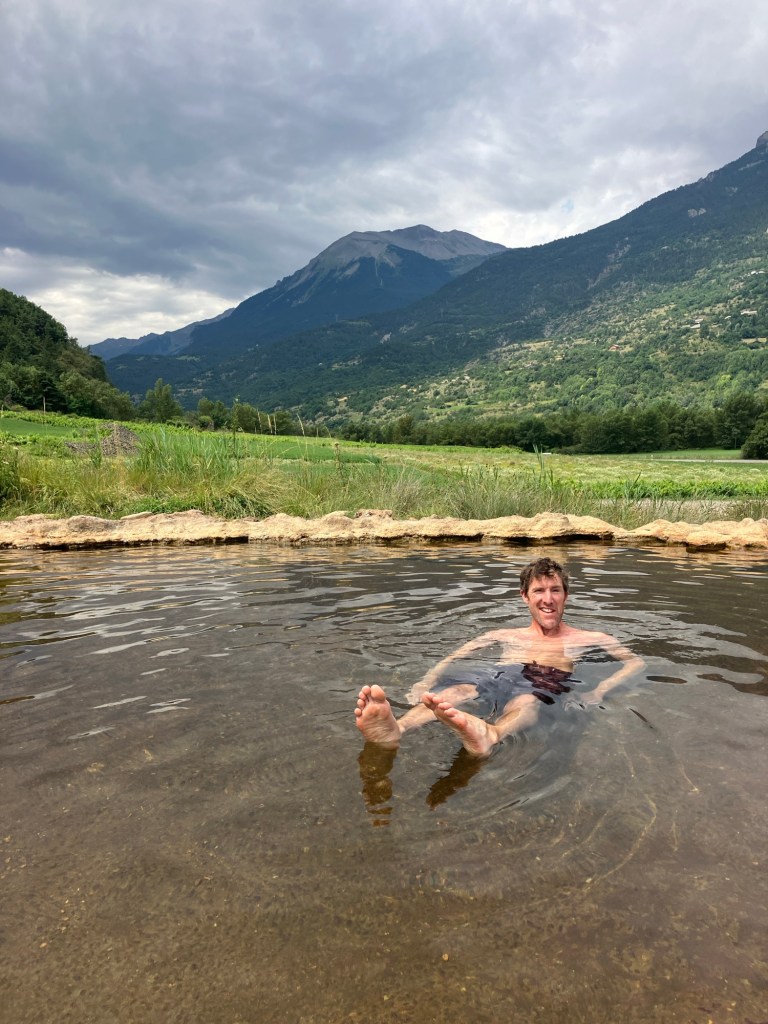 As it turned out, a few minutes further along the road is a natural thermal pool. We were so close and in need of a refresh, that we decided to check it out. The water is by no means hot, but it’s certainly warmer than our local lake, so we got in and soaked up some of it’s healing minerals, before driving back to the hideout feeling well exercised, fed and refreshed.
